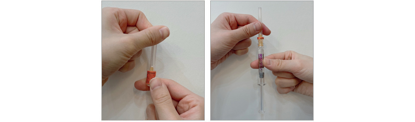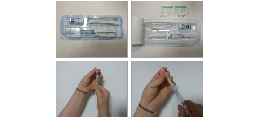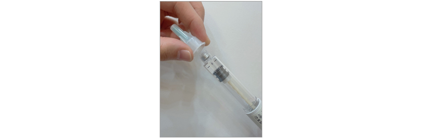 a. 프리필드 시린지에 희석용 주사바늘을 둘려 끼운다.