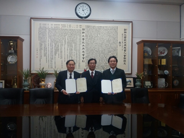 2017.2.3(금) 조선대학교 총장실에서 시엘병원과 조선대학교의 산학협력 협약식이 진행되었으며 최범채 병원장(시엘병원)님과 정형식 대학원장(조선대학교)님께서 참석하셨습니다. 이번 양 기관의 협약은 상호 발전과 국가 및 지역사회에 대한 기여를 위하여 지역사회의 발전은 물론 우수한 인재 양성에 그 목적이 있습니다. 실제로 조선대학교는 석사과정으로 의료관광학과를 개설하였고 최범채 병원장님께서 겸임교수를 역임하여 상호 협력을 통해 많은 노력을 아끼지 않고 있습니다. 대학원 입학 시 장학혜택을 부여하고 꾸준한 학술교류와 학생교육 및 현장실습 등 여러 협력 사항과 양 기관의 활발한 교류가 이루어져 좋은 결과를 얻을 수 있도록 최선을 다 하고 있습니다. |