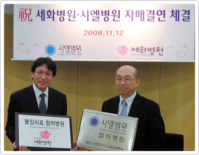 각각 영호남 지역에서 모범적인 불임 전문병원으로 알려진 광주 시엘병원(최범채 병원장)과 부산 세화병원(이상찬 병원장)은 11월 12일(수) 오후 5시에 본원 6층 세화홀(세화병원)에서 뜻깊은 자매결연식을 양 병원 병원장님과 관련 임직원들이 함께 한 가운데서 열었습니다. |