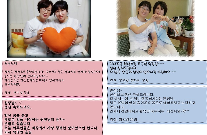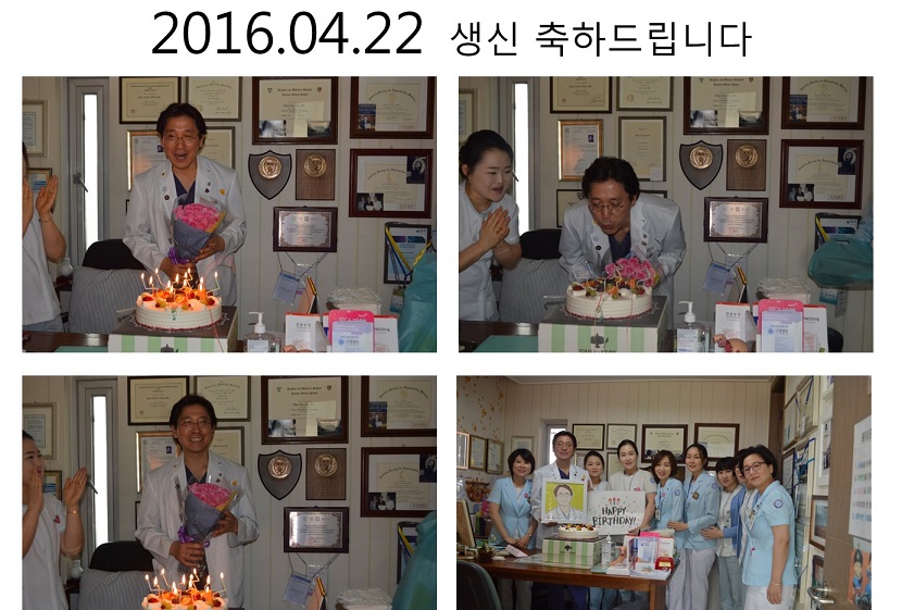 2016년 4월 22일 오전 10시 외래 최범채 원장님진료실에서는 세상에서 가장 아름답고 진솔한 생일파티가 열렸습니다. 오늘은 시엘병원을 이끄시는 최범채 원장님의 생신입니다. 앞으로도 늘 행복하시고 건강하셔서 시엘병원의 든든한 큰 나무가 되어주시고 수많은 난임 치료하는 분들께 희망의 에너지를 끊임없이 지속적으로 전해주시기 바랍니다. 외래 직원들이 모여 축하드리는 사진을 함께 올립니다. |