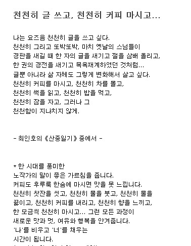 | 천천히 글쓰고, 천천히 커피마시고 (17년 8월 12일) | |