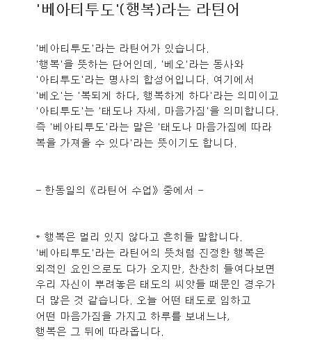 | 베아티투도(행복)라는 라틴어 (18년 2월 5일) | |