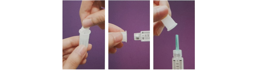 a. 프리필드 시린지에 희석용 주사바늘을 둘려 끼운다.