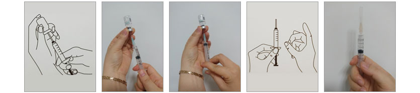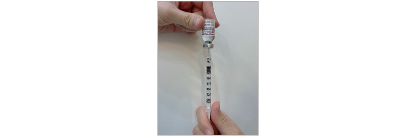 • 약병에서 잘 녹은 주사액을 다시 주사기에 담습니다.